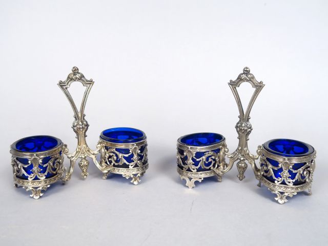 Paire de salerons double de style Louis XVI en argent. Poids (sans les verrines) : 148 g