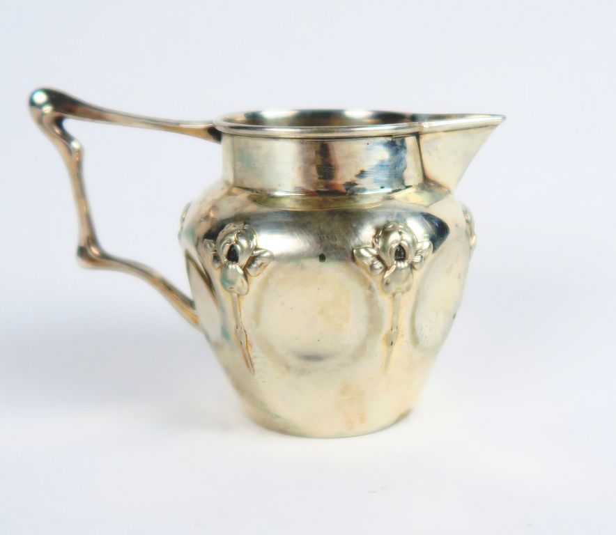 Petit pot à lait Art Nouveau en argent, à décor d'iris. Poids : 49 g