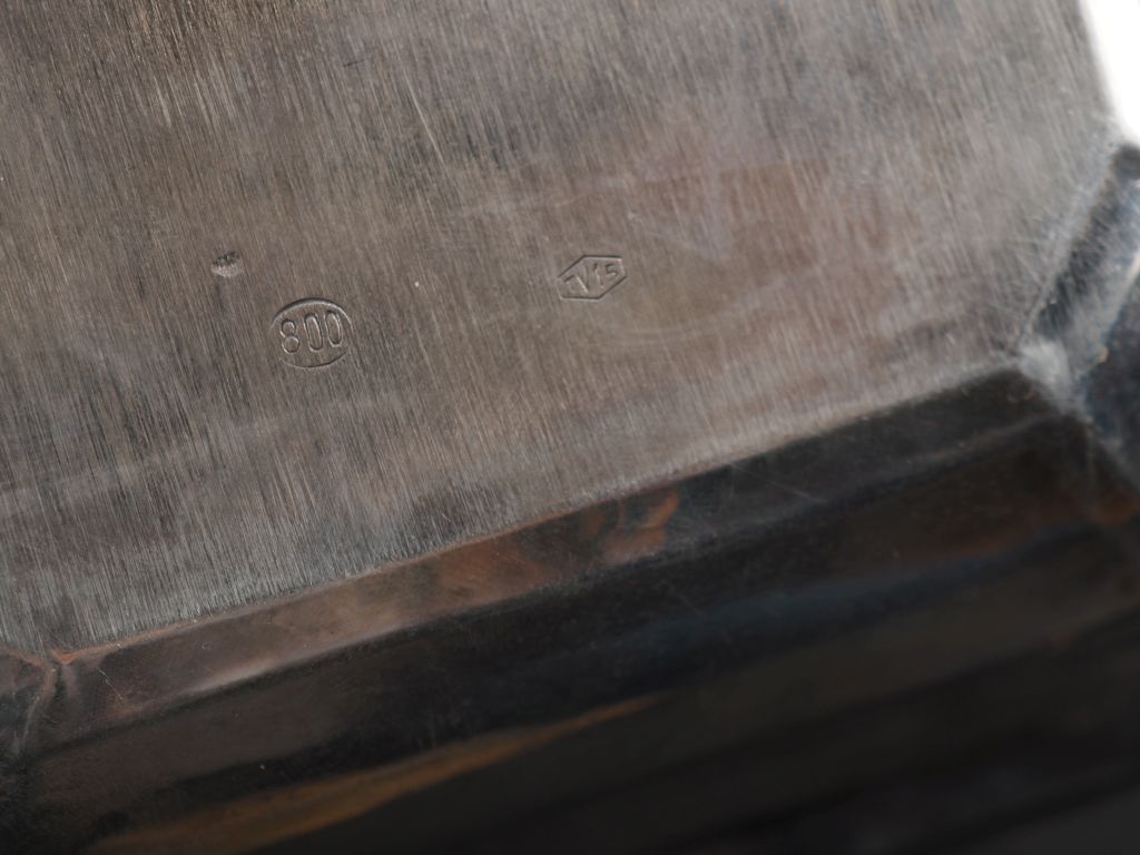 Petite jatte carrée en argent, travail étranger 800 1/1000 une théière en argent, manche en bois noirci, travail étranger Poids tel : 547 g