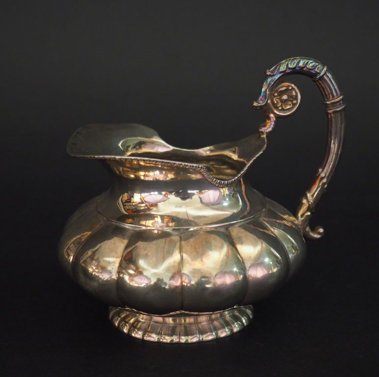 Petite verseuse en argent étranger, à décor de godrons. Anse feuillagée en enroulements. H.12,5 cm Poids. 227 g
