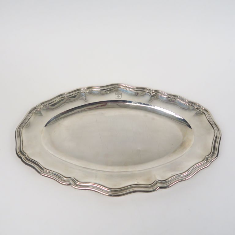 Plat ovale de style Louis XV en argent, poinçon Minerve, modèle à filet. Armorié. Poids. 994 g