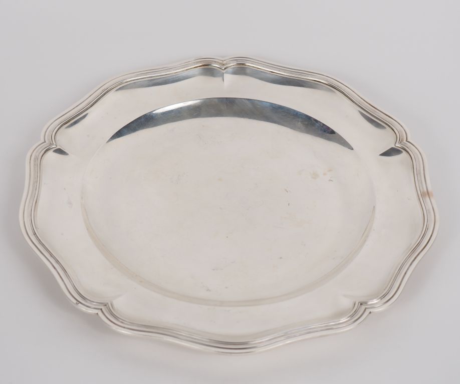 Plat rond de style Louis XV en argent 925, poinçon Minerve, modèle à filets. Bord chantourné. M.O : E. Puiforcat Diam. 35 cm Poids. 1046 g