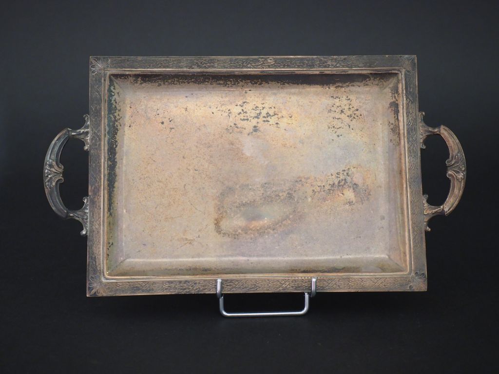Plateau de style Louis XVI en argent, poinçon Minerve. Poids : 265 g