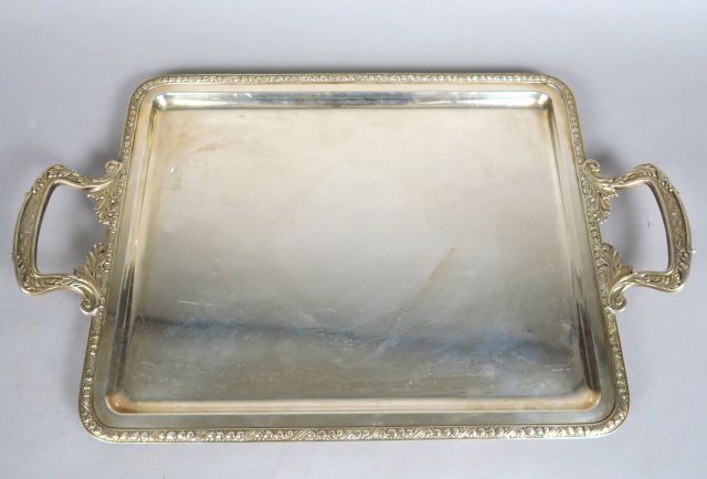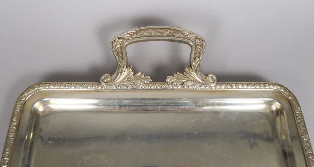 Plateau en argent étranger, prises feuillagées. Poids : 1 100 g