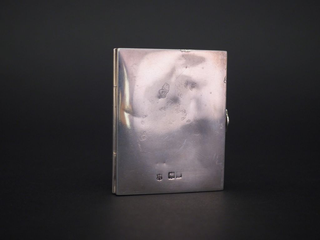 Porte-photo articulé à trois brins en argent anglais, en forme de petite boite. M.O : Mappin Webb Dim. fermé : 7,4 x 5,9 cm Dim. ouvert : 7,4 x 17,1 cm Poids. 131 g