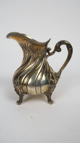 Pot à lait de style rocaille en argent, poinçon Minerve, décor de côtes torses. Poids : 190 gr