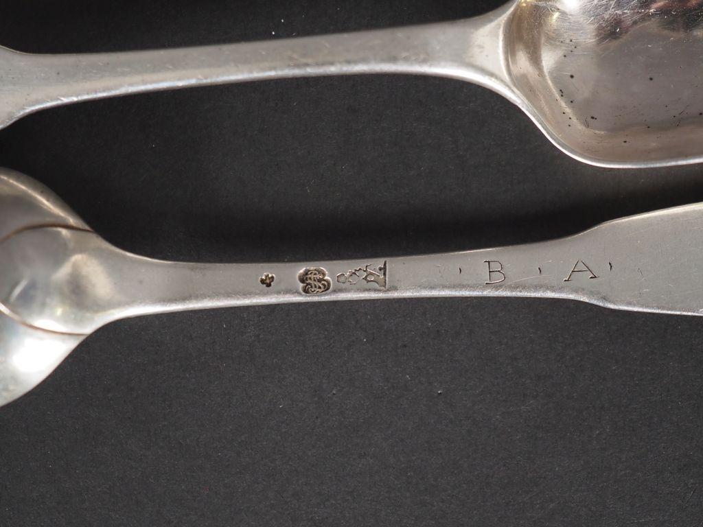 Quatre petites cuillères XVIIIème en argent. Poinçons et modèle dépareillés. Poids. 78 g
