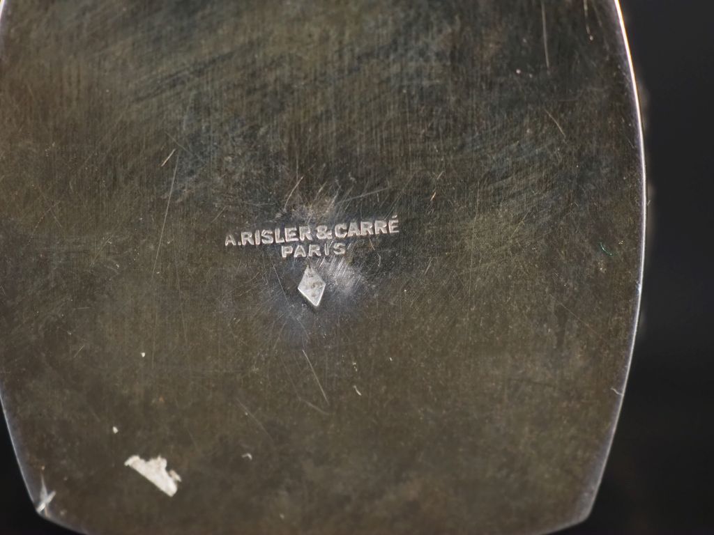 Saleron en argent poinçon Minerve, côtés ajourés, fond plat, verrine bleue, M.O Risler et Carré, Poids : 60 g