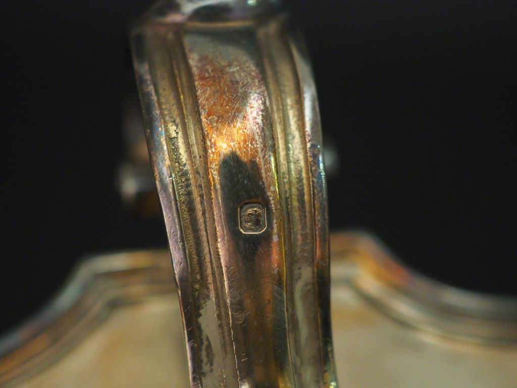 Saucière de style Louis XV en argent, poinçon Minerve, modèle à filets moulurés. Anses à enroulement. M.O : E. Puiforcat Long. 26,5 cm Poids. 942 g