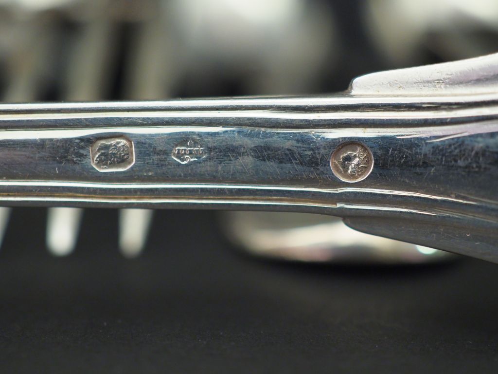 Suite de six grands couverts Restauration en argent, poinçon Vieillard, modèle à filet. M.O : J.O Poids. 1072 g (maitres orfèvres différents pour deux fourchettes)