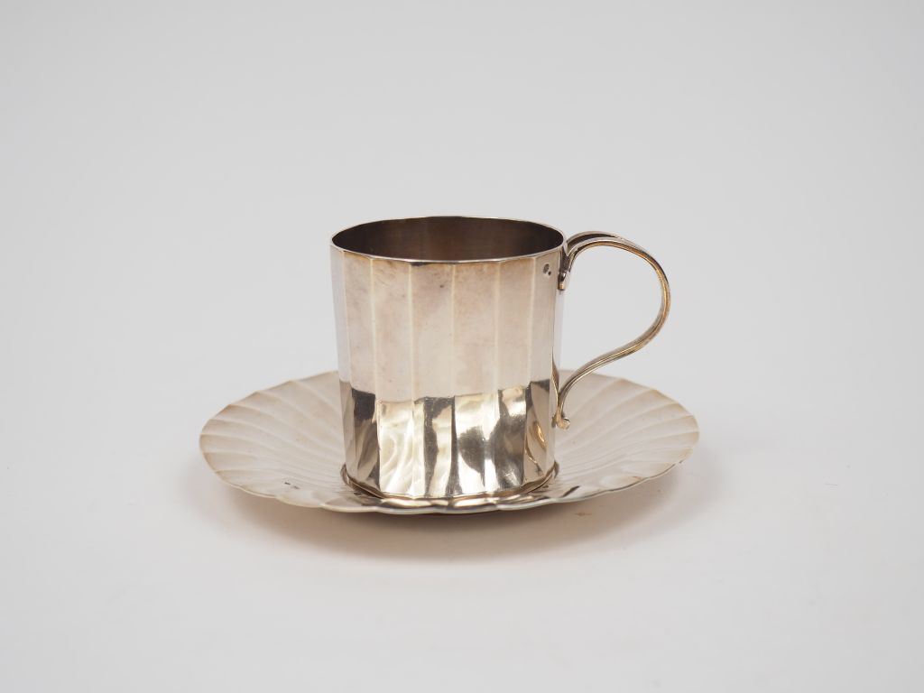 Tasse à facettes et sa sous-tasse XVIIIème en argent. M.O marqué uniquement sur la tasse : François Joubert. Poids. 189 g