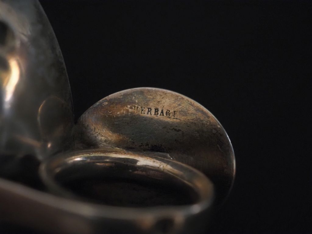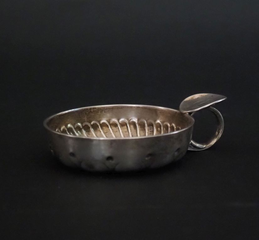 Taste-vin en argent 925, poinçon Minerve, à décor de monogramme sur la prise. Long. 11,1 cm Poids. 118 g