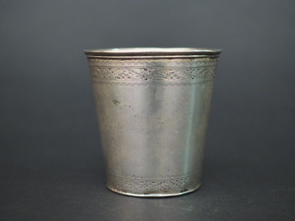 Timbale de forme évasée en argent étranger. H. 5,8 cm Poids : 66 g