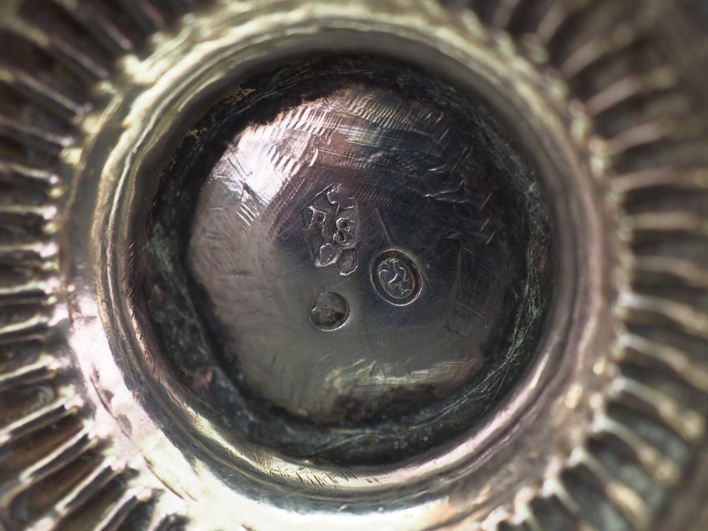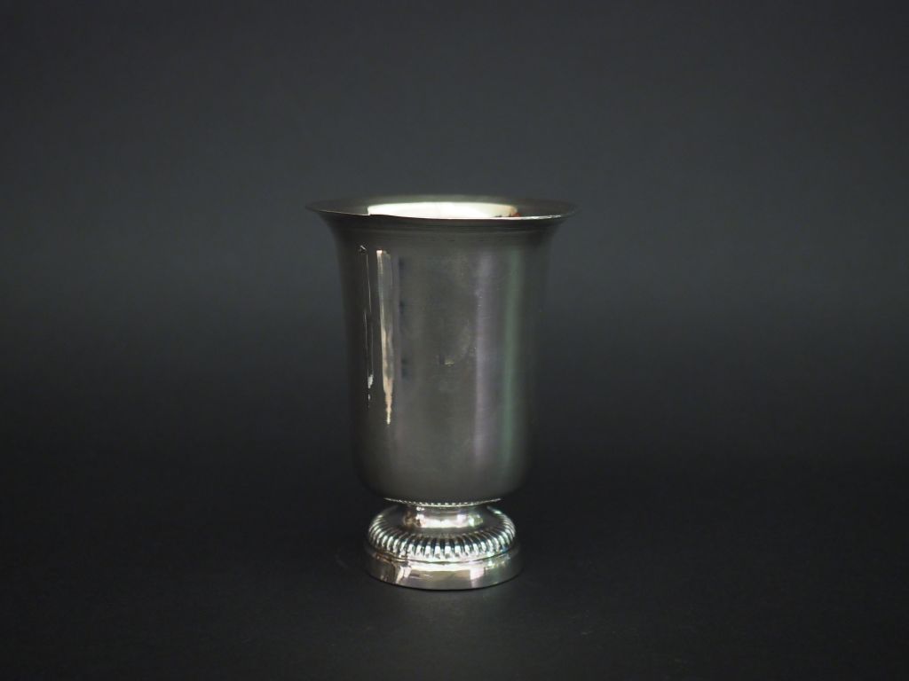 Timbale de forme tulipe sur piédouche en argent uni, poinçon au Coq. Piédouche, à décor de godrons. M.O : R.S H. 12 cm Poids. 120 g