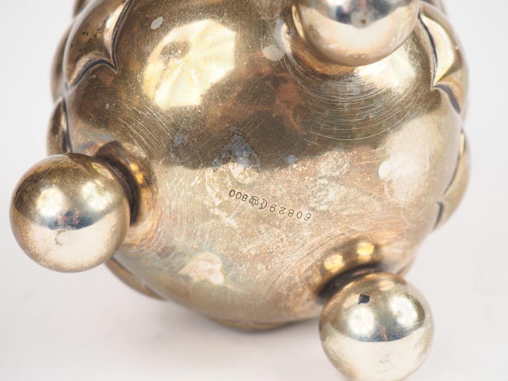 Timbale en argent étranger, à décor de cœurs. Poinçonnée. H. 12 cm. (Enfoncements).