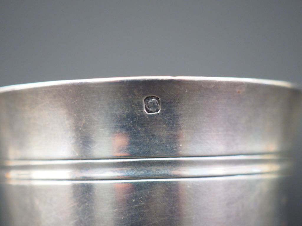 Timbale sur piédouche en argent, poinçon Minerve. M.O : Bancelin à Paris. H. 7,2 cm Poids. 106 g