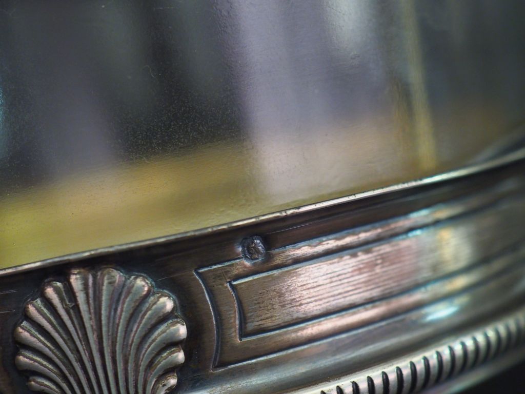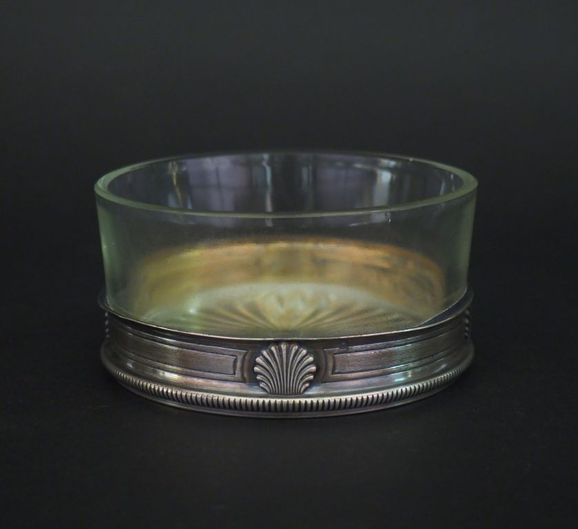 Verrine en cristal et argent, poinçon Minerve, à décor de coquilles. H. 6 cm Diam.11,5 cm Poids tel. 350 g
