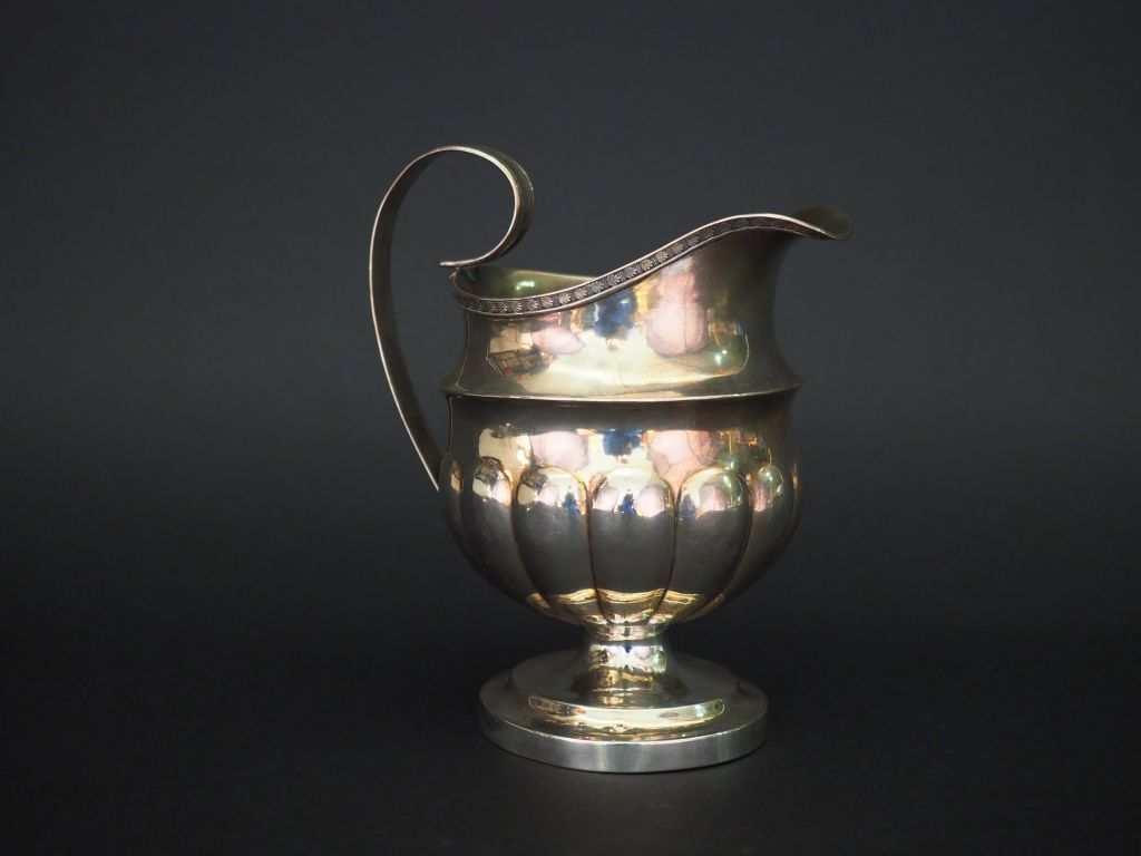 Verseuse de style Empire en argent, à décor de godrons et d’une frise de palmettes. H. 14,4 cm Poids. 197 g