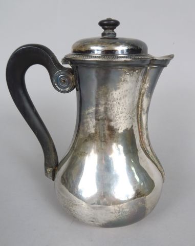 Verseuse marabout début XIXe en argent, poinçon Vieillard, manche en bois noirci. H. 20,5 cm. Poids tel : 378 g