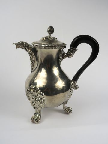 Verseuse Napoléon III de style Rocaille en argent, poinçon Minerve. Poids tel : 503 g