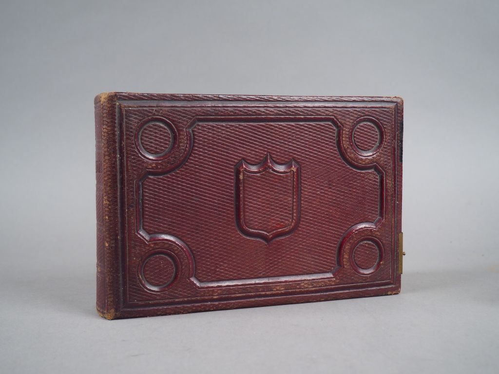 Album relié cuir rouge contenant 21 photos représentant une famille de cuirassiers en grande et petite tenue. On y trouve notamment un dragon en grande tenue. Album contemporain de la guerre Franco-Prussienne de 1870. Etat 1