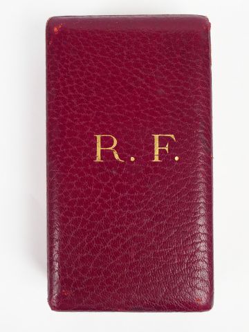 Belle et grande boite en carton rouge sombre embossée « R.F. » de la société Arthus Bertrand contenant une étoile d’officier de la légion d’honneur (or) troisième république avec son ruban et une croix de commandeur également en or avec son ruban plié dans la boite (Fabrication de qualité intactes) 1