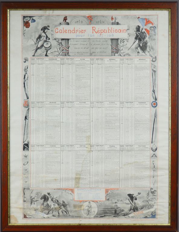 Calendrier Républicain pour l’an 107-108. Cassan Fils. Editeurs Toulouse. Imp. Berthoumieux. Toulouse. (pliures et déchirures)