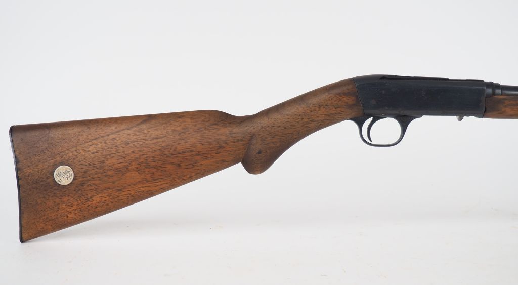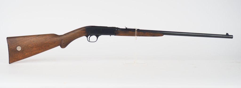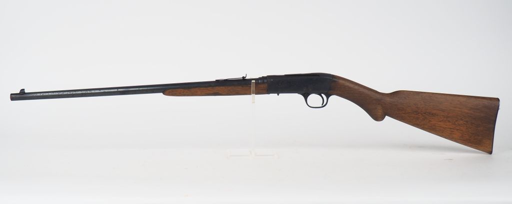 Carabine semi-automatique Browning, calibre .22 short, arme n°5697. Carabine démontable, boite de culasse fraisée, mécanisme fonctionnel à vide. cat. B