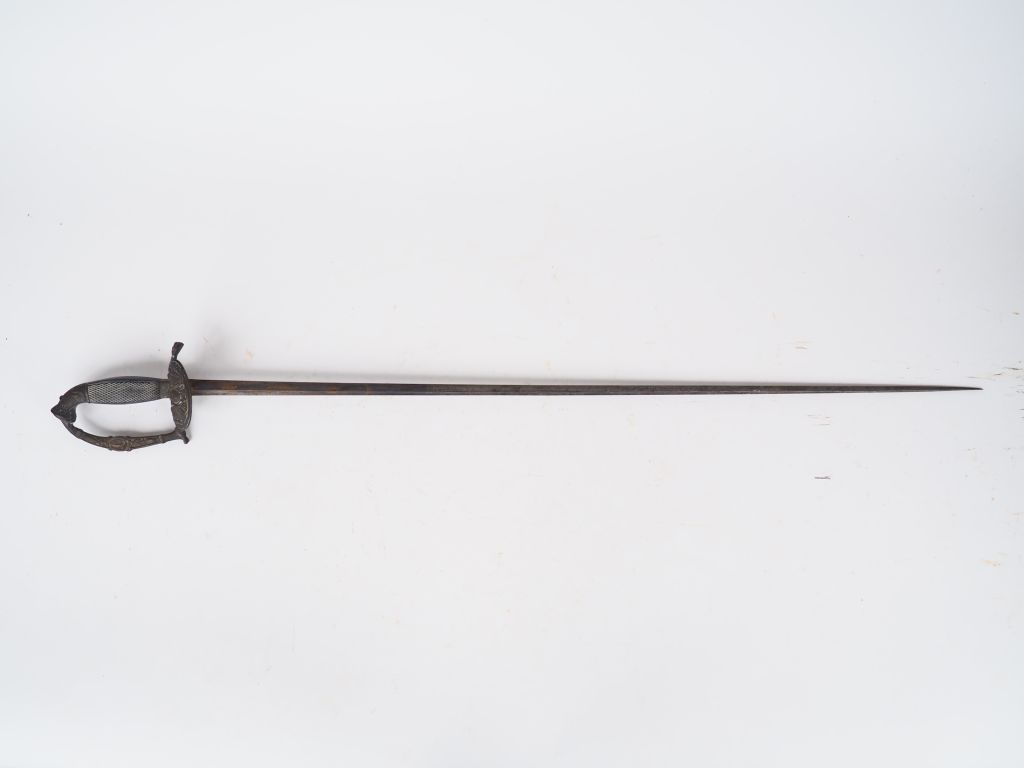 Épée d'officier époque Restauration, lame triangulaire à 3 pans creux,...