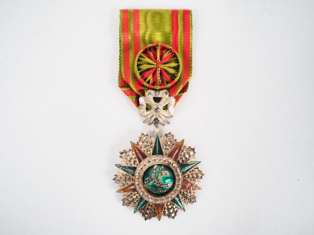 Etoile d’officier de l’ordre tunisien de la gloire Nichan el Iftikar Epoque Ali Bey (1882-1902) avec son ruban à bouffette. (Etat 1)