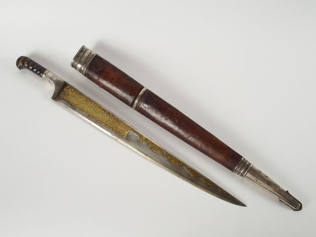 Grand couteau Kyber. Lame damasquinée d'or, garnitures argent.