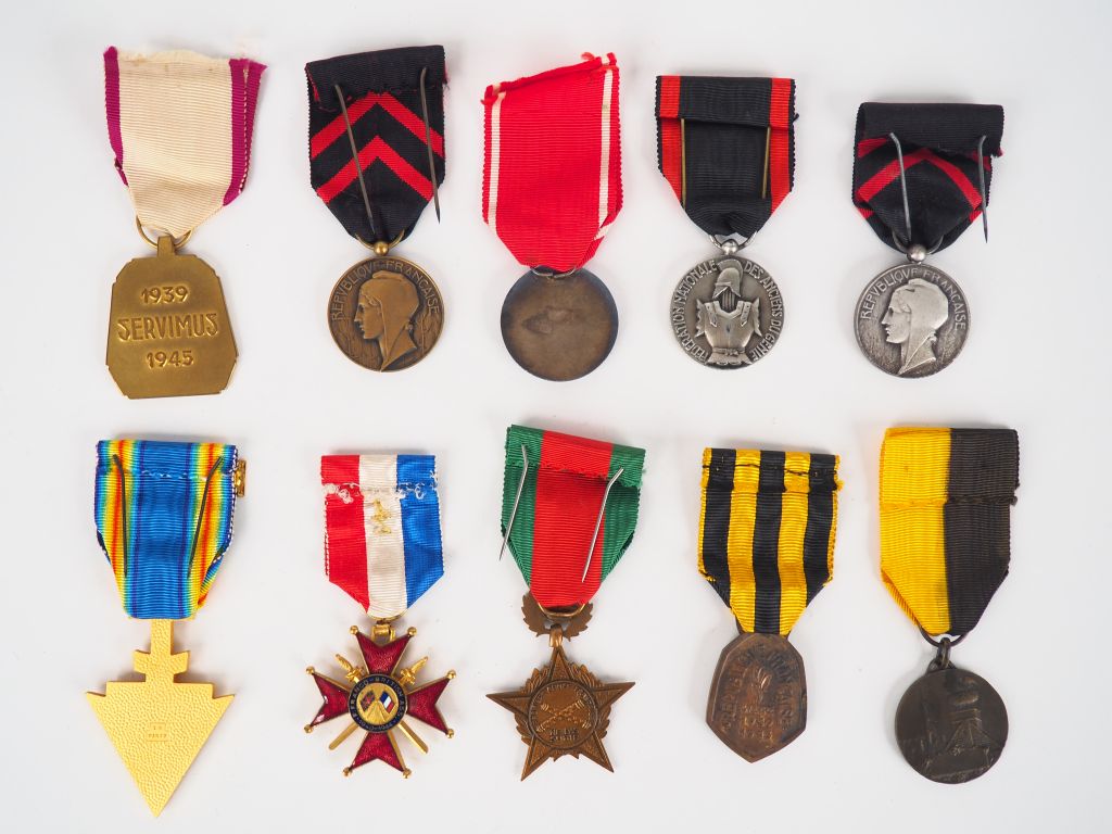 Lot de 10 décorations diverses décorations commémoratives non officielles françaises (batailles, associations et amicales régimentaires.) avec leur ruban spécifique. (Etat 1)
