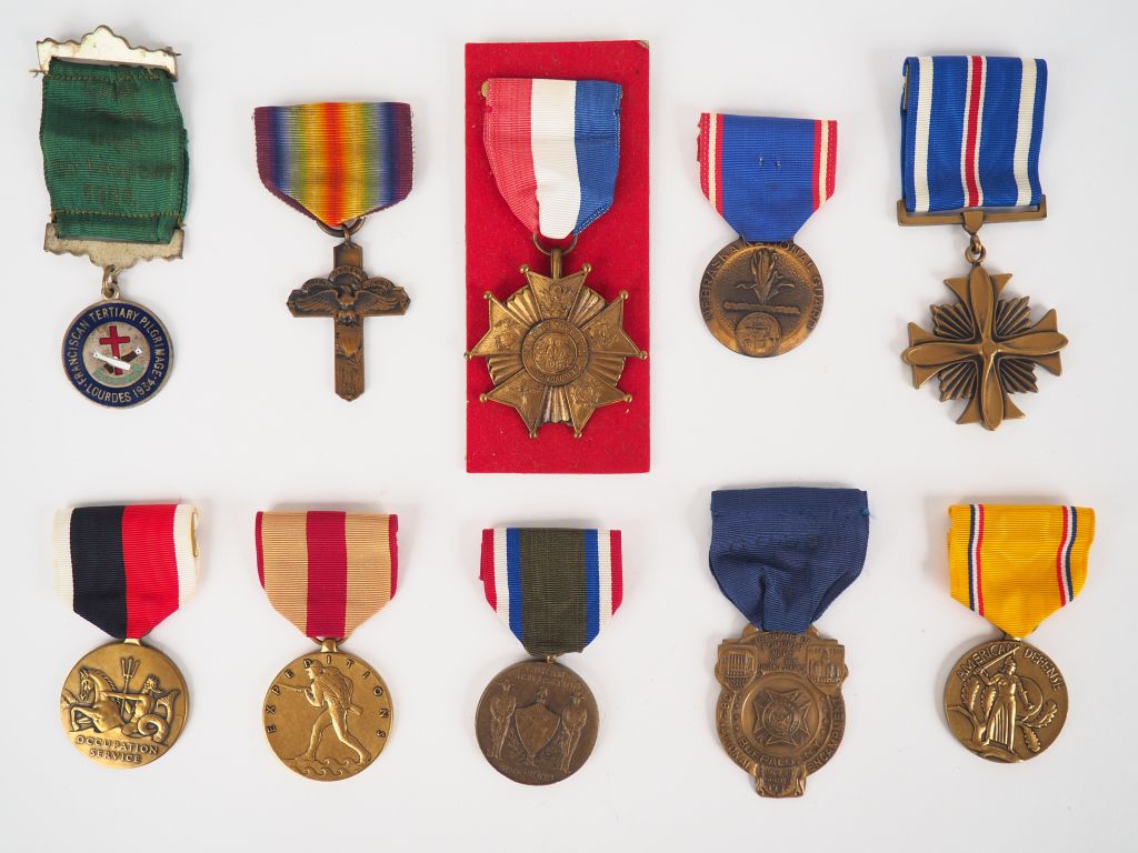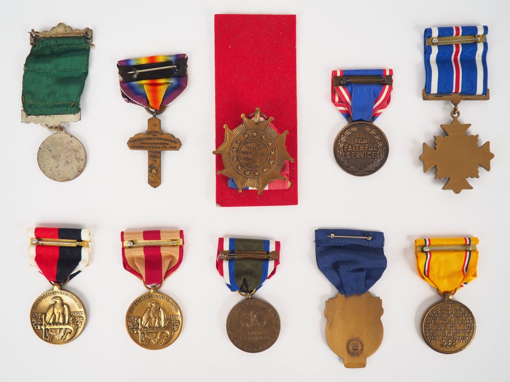 Lot de 10 décorations pendantes avec leur ruban spécifiques émises par les Etats-Unis d’Amérique à diverses occasions (dont commémorative remise par communauté religieuse). (Etat 1)