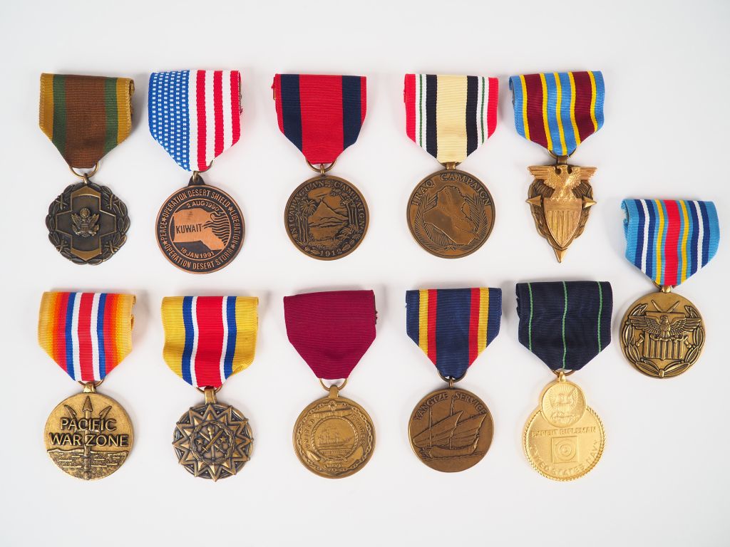 lot de 11 décorations U.S. diverses post 1945 avec leurs rubans. Occasion idéale pour commencer une collection de phaléristique U.S. (voir photo). (Etat 1)