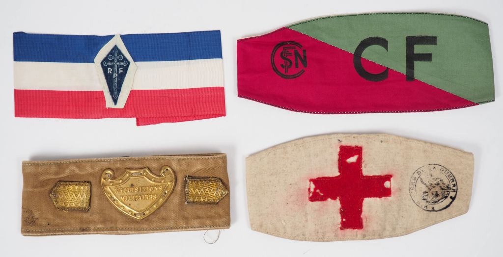 Lot de 85 médailles et brassards dont : - brassards : SNCF bicolore,...