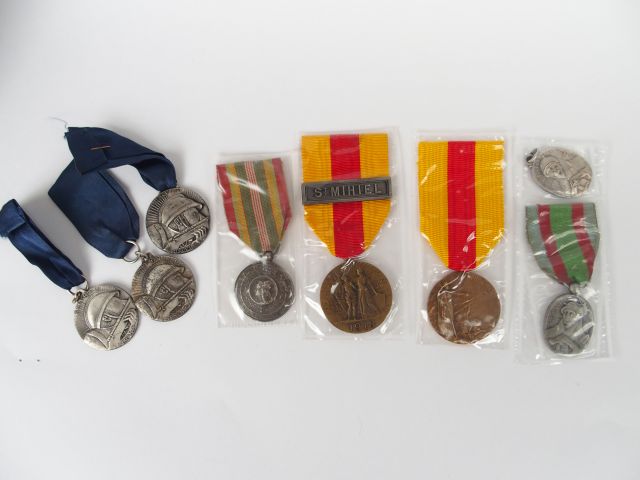 Lot de décorations françaises commémoratives dont deux médailles d'hommage aux combattants de St Mihel, Deux commémoratives des combats de l'Argonne on y joint trois commémoratives départementales (Loir et Cher, Aveyron et Var) (11/11/18-11/11/68)1