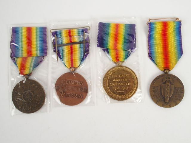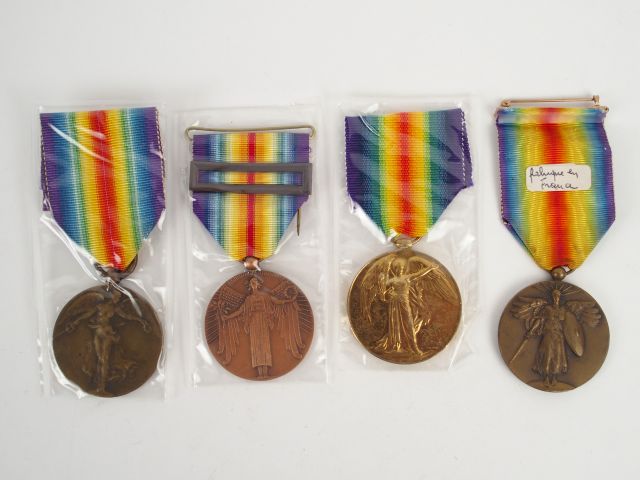 Lot de médailles interalliées comprenant: une portugaise, une belge, une britannique et une U.S avec leurs rubans arc en ciel. 1.