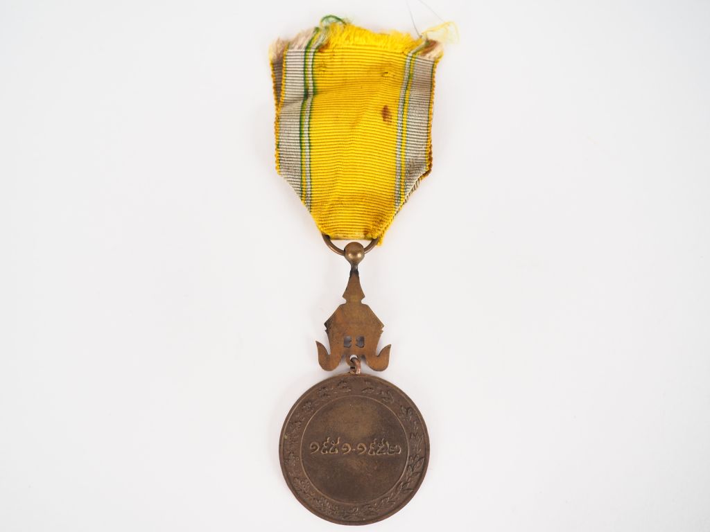 Médaille cambodgienne « Anussara (récompense des actes désintéressés ) » classe bronze émise durant le règne du roi Norodom Sihanouk émise en 1951 avec son ruban. (Etat 2)