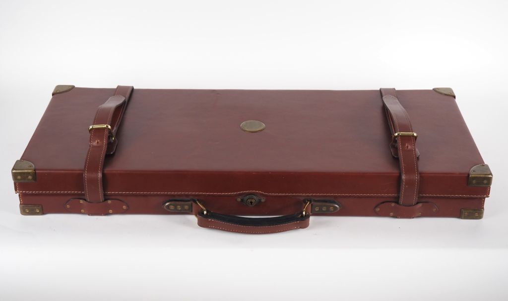 Paire de fusils de chasse Holland Holland « Royal Hammerless ejector », deux coups, calibre 12-65. Canons juxtaposés numérotés à l’or, avec adresse (usures). Clés d’ouverture numérotées en suite. Platines signées, décorées au trait. Double détente. Queues de pontet numérotées. Crosses demi-pistolet en beau noyer en partie quadrillé, prolongées, avec pièces dorées monogrammées. Remis en couleurs. Dans son coffret de transport recouvert de cuir, gainé de feutre vert avec accessoires, huilier, étiquette de la Maison Holland Holland en cuir marquée à l’or et étiquette papier. Catégorie C. Longueur des canons : 76,5 cm Longueur totale : 120 cm n°23067 et n°23068 (1902). Nota : les armes de chasse ou de tir sont vendues dans l'état, sans garantie, aucune réclamation une fois l'adjudication prononcée ne sera prise en compte , l'exposition préalable ayant permis de les examiner, de les prendre en main et de prendre toutes les mesures nécessaires. Expert : Arnaud de Gouvion Saint-Cyr
