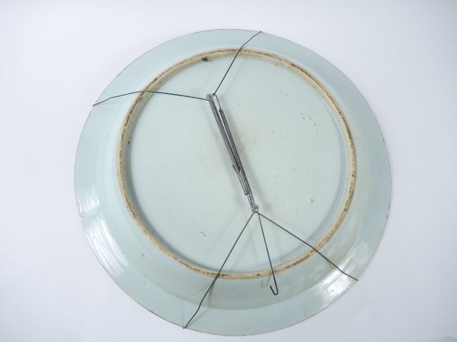 Paire de plats en porcelaine d’Imari chinois à décor de poissons et motifs floraux. Chine, Compagnie des Indes, période Qianlong, XVIIIe siècle . Diam. : 45.5 cm (égrenures au revers). Expert : cabinet ANSAS