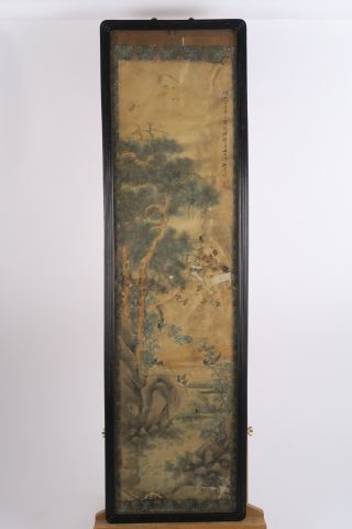 4 peintures sur papier, à décor d'oiseaux et de végétaux (mauvais état). 82 x 25 cm