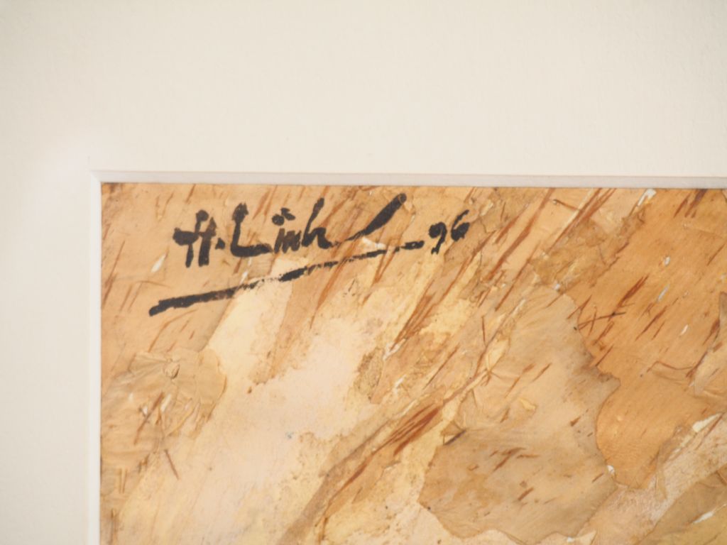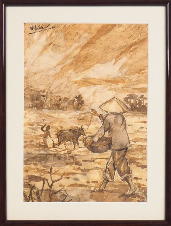 A. LINH (?) Vietnam, XXe "paysans dans les rizières" Technique mixte. Signé en haut à gauche et daté 91.