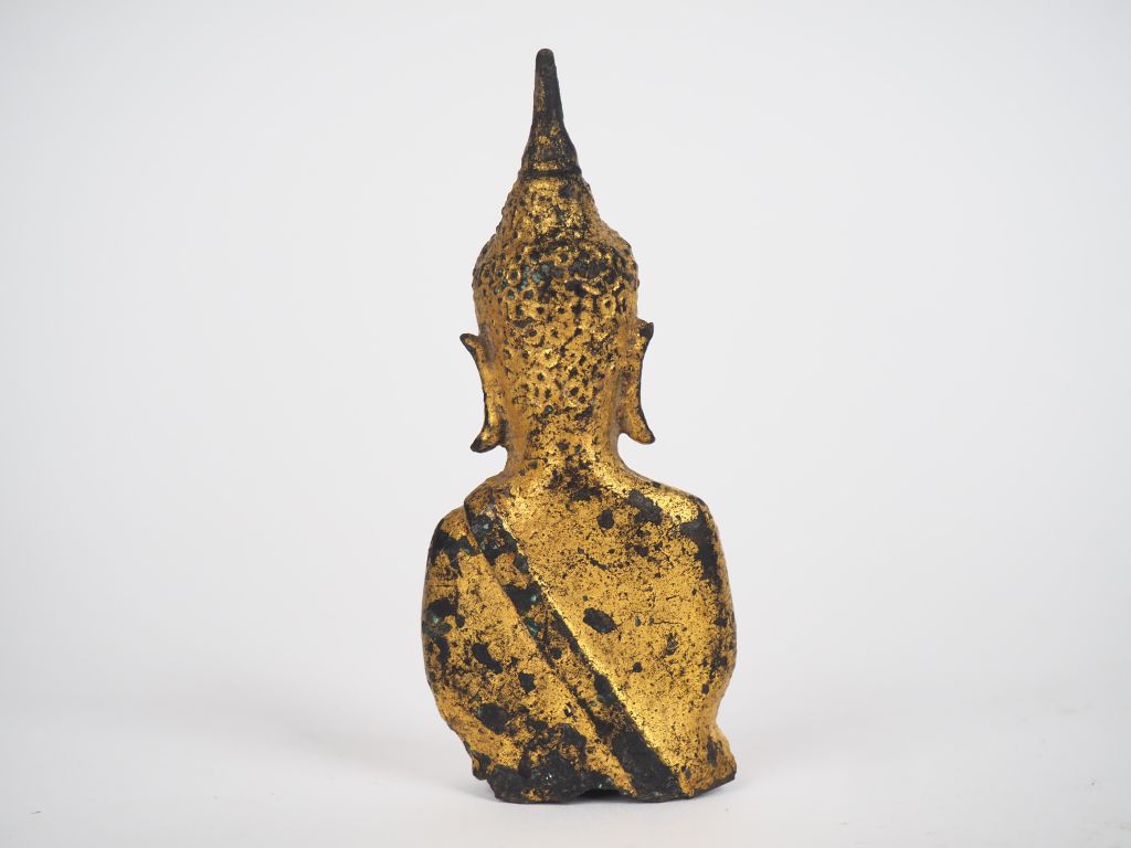 Ayutthaya, XVIIe siècle, Petit sujet en bronze laqué et doré, représentant un buste de bouddha, les mains en « dhyâna-mudra ». H. 12 cm