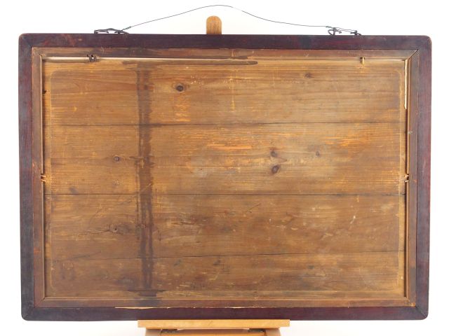 Belle peinture sur soie à décor d'objets mobiliers, d'enfants et de compositions florales. Chine Période Qing (signée Wang Cheng Xun) 50 x 76,5 cm
