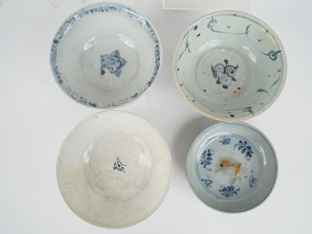 Chine, du XVIe au XVIIIe siècle, 6 bols en porcelaine bleu blanc à décor divers de sujets H. de 5 à 7 cm.