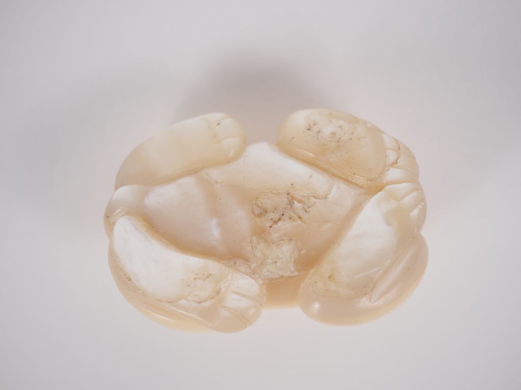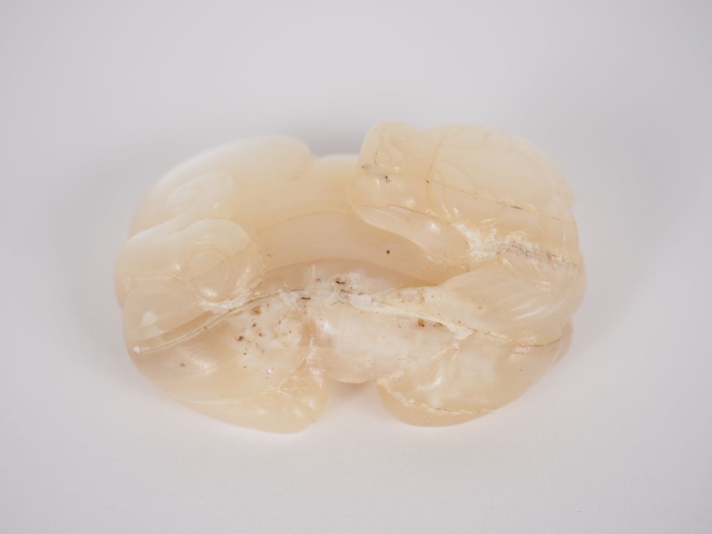 Chine, fin XVIIe – début XVIIIe siècle Sujet en nacre, représentant un dragon, la tête tournée. L. 5,4 cm