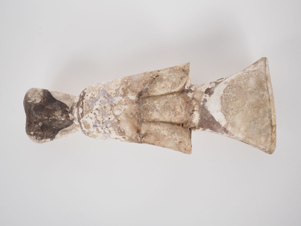 Chine, période Han Mingqi en terre cuite avec traces d’engobe, représentant une dame de cour. H. 28,5 cm