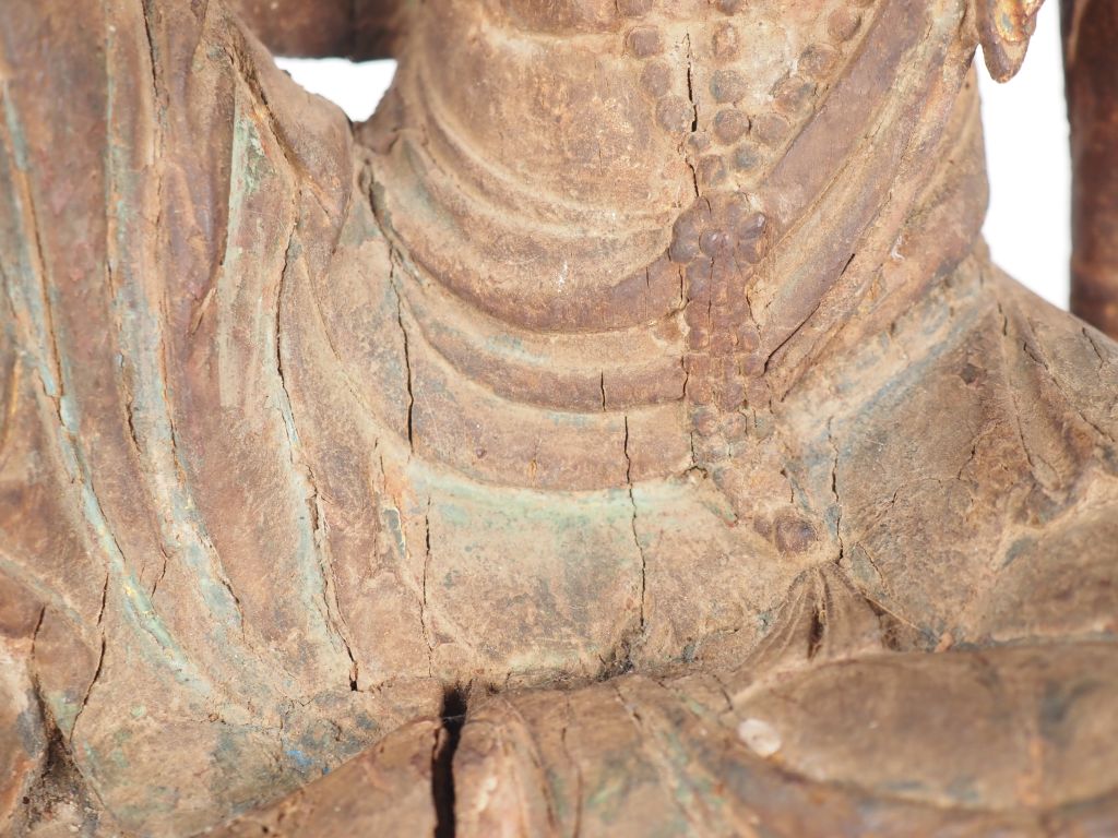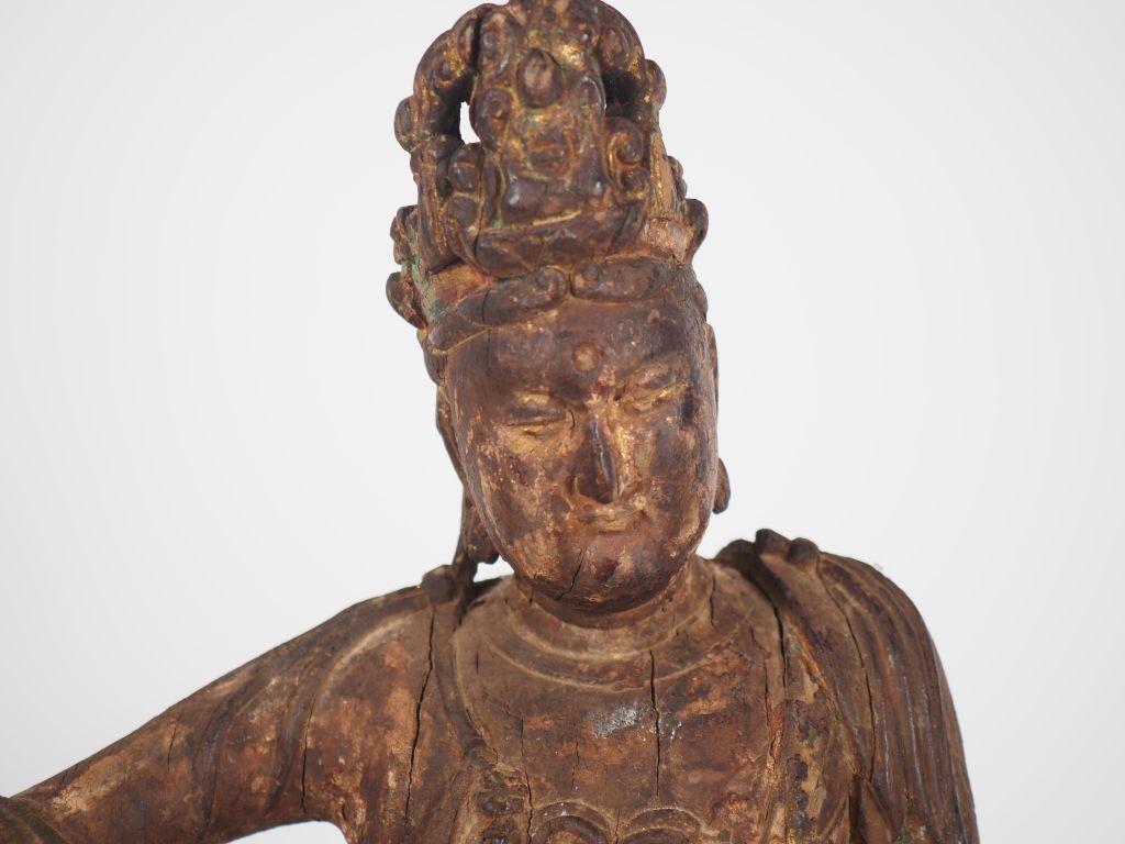 Chine, période Qing Statuette en bois, représentant une Guanyin assise en lalitasana (délassement royal) sur un rocher, la tiare comprenant la réminiscence d’Amitabha H. 41,5 cm
