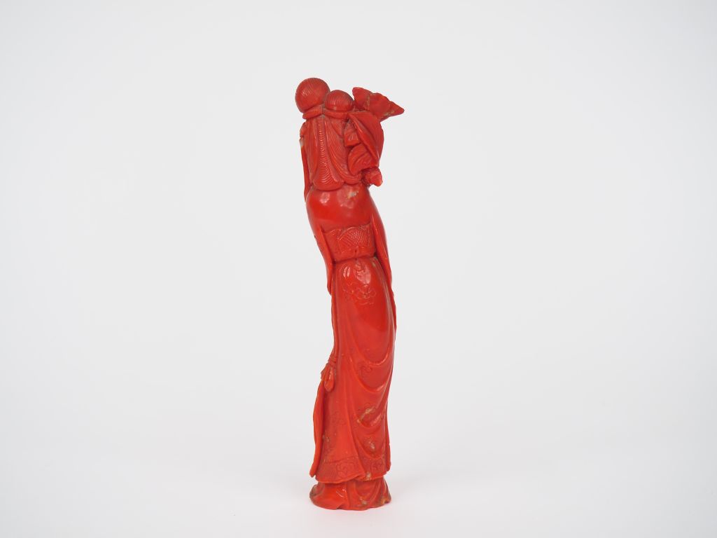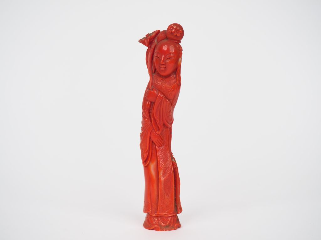 Chine vers 1930. Statuette en corail rouge représentant une déesse du printemps. H. 14,5 cm Poids : 144 g