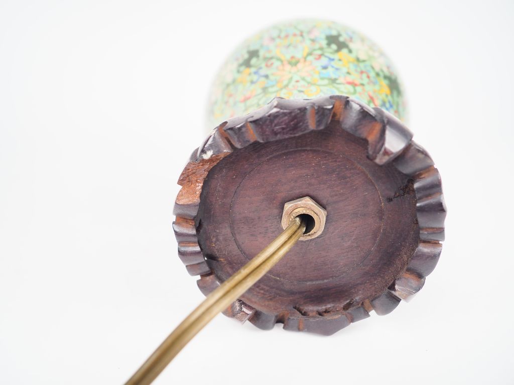 Chine, XXe siècle, Vase balustre en émaux cloisonnés sur cuivre à décor polychrome de fleurs et rinceaux feuillagés. H. 23 cm